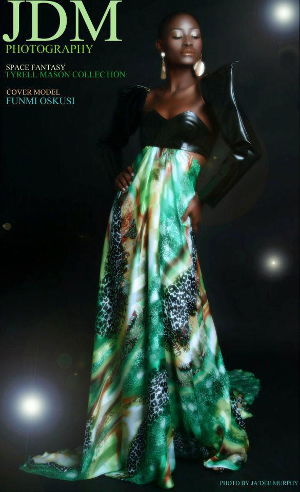 multi-color print chiffon gown w/contrast patent leather upper bra/sleeves